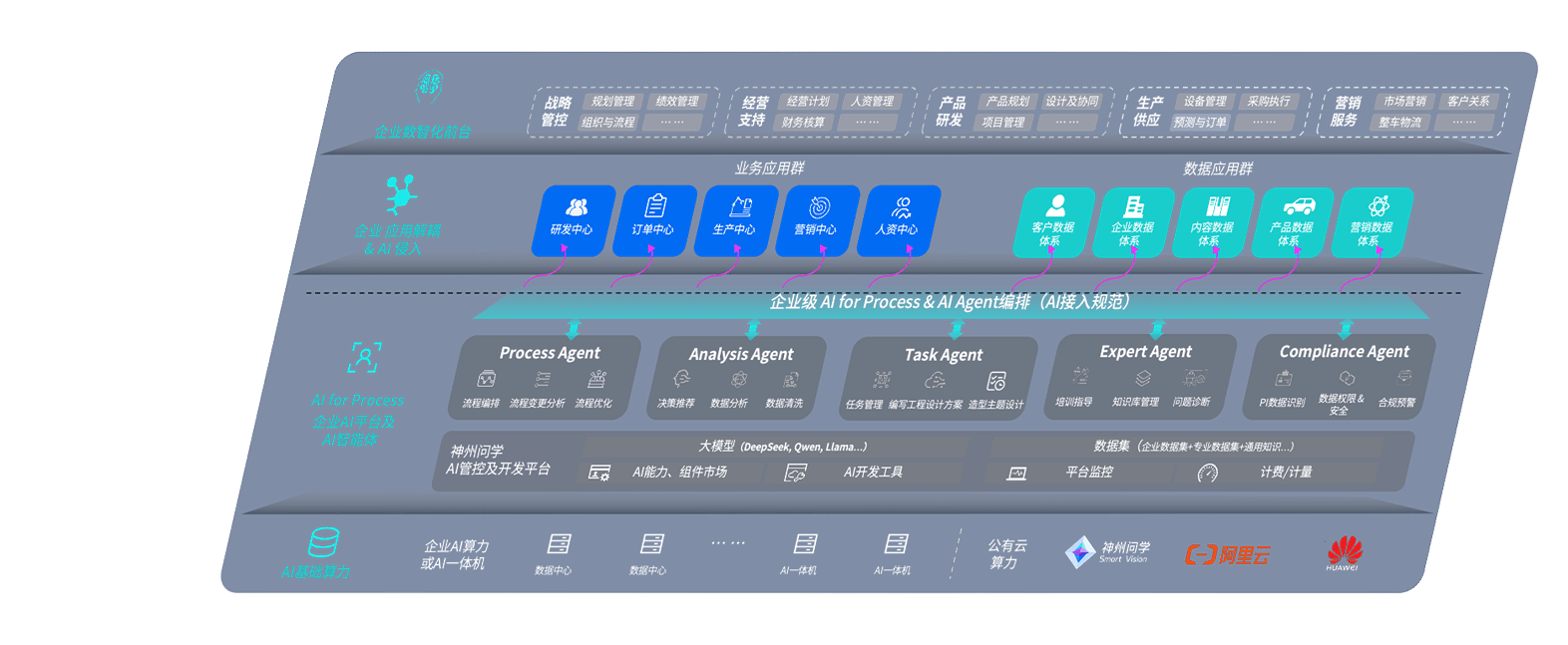端到端的一站式AI工作空间深度融合了从企业战略规划到日常经营的全流程业务板块,,,,定向解决车企内部领域多、、、部门多、、、、链条长、、、、场景碎片化等难题,,,,支持车企快速构建以AI为核心的生产力写作体系,,,,实现任务执行与AI能力的无缝集成与交互